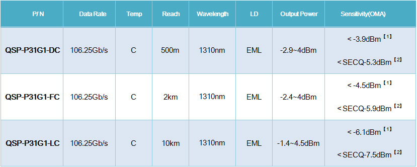 · 1*100G PAM4 EML laser / PIN photo-detector
