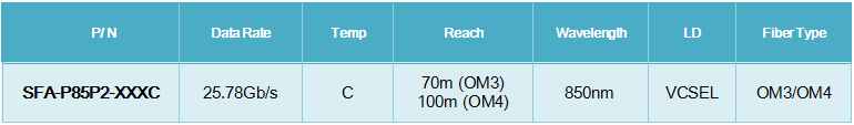 · Supports 25.78Gb/s aggregate bit rate