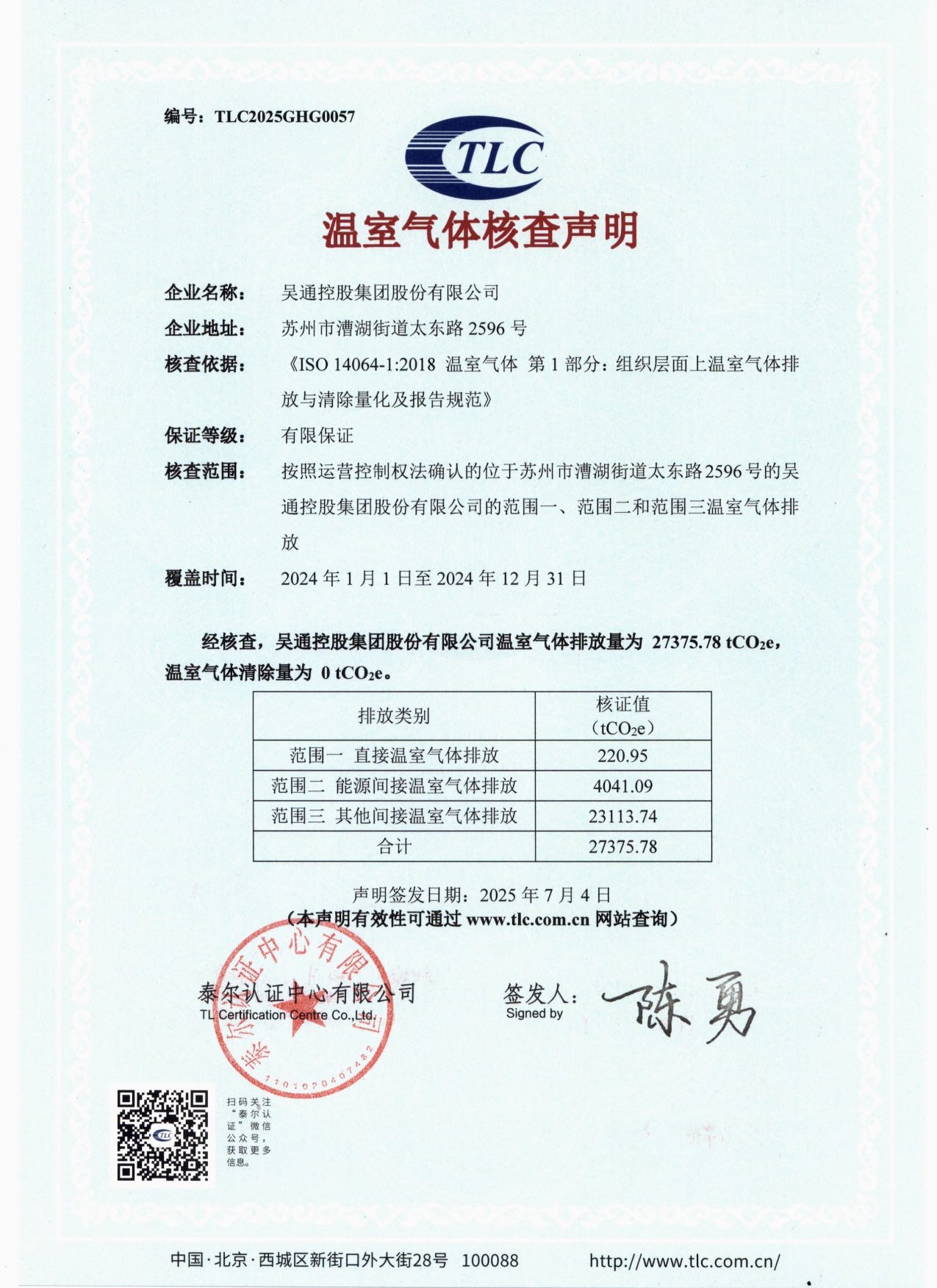 温室气体核查声明